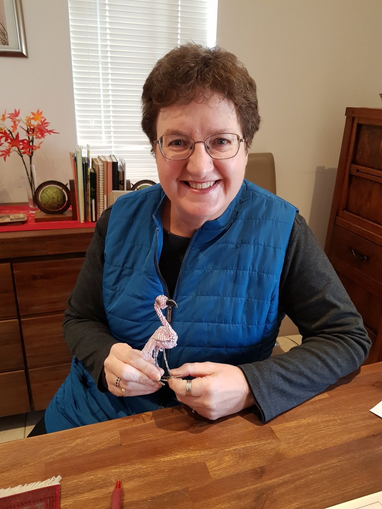 More recently, a new benchmark was established. March 2018, a trip to South Africa to see the cricket (a story there for another day – the “Sandpaper Test”). After cricket, sightseeing tours, wine tasting, and generally a very good time, we decided to pick up a few local souvenirs. Last chance to purchase some items for family and friends. An elephant print textile for neighbour Denise, some sew-on patches for sisters Lynette and Rosalie. Ah, that looks interesting – a beaded flamingo.