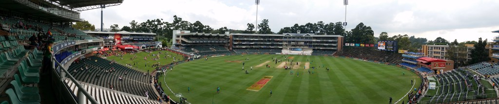 Time to get out the photo scrapbook and journal from our 2018 trip to South Africa. Yes, there it is; the Wanderers Stadium in Johannesburg. Naming rights at that time were with the Bidvest Group.