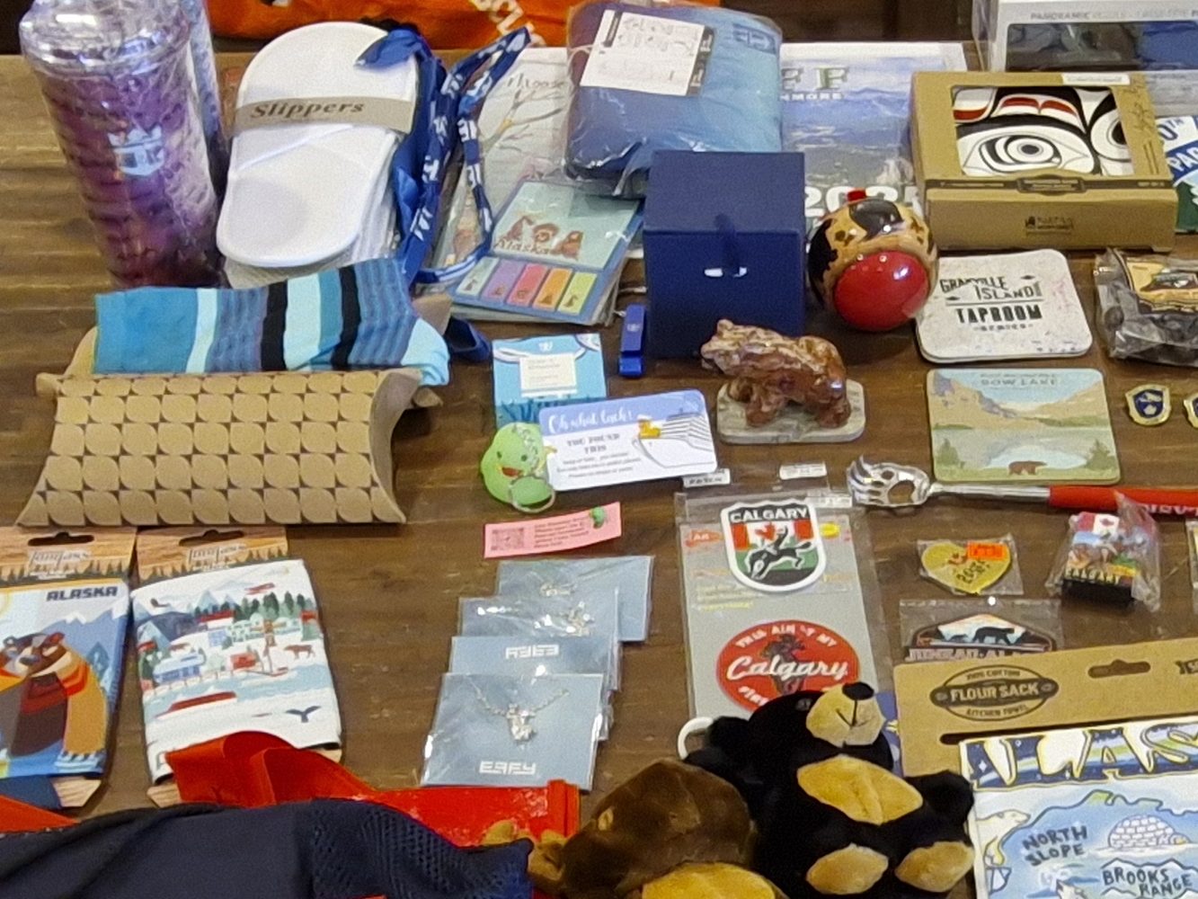 We found one at, of all places, the entrance to the down trip on the Icy Strait Point Gondola. You might call it a desolate location. Although at times it was quite busy, when we went to descend, there was no queue. There was one family kind of hovering around. In retrospect, we suspect it was the family who planted the duck, to see who found it. This time, it was a teeny tiny duck, tucked in on a fence post. When we went from the gondola to another cable car back to the ship, we noticed another just the same, but a different colour. We took both back on board with us.